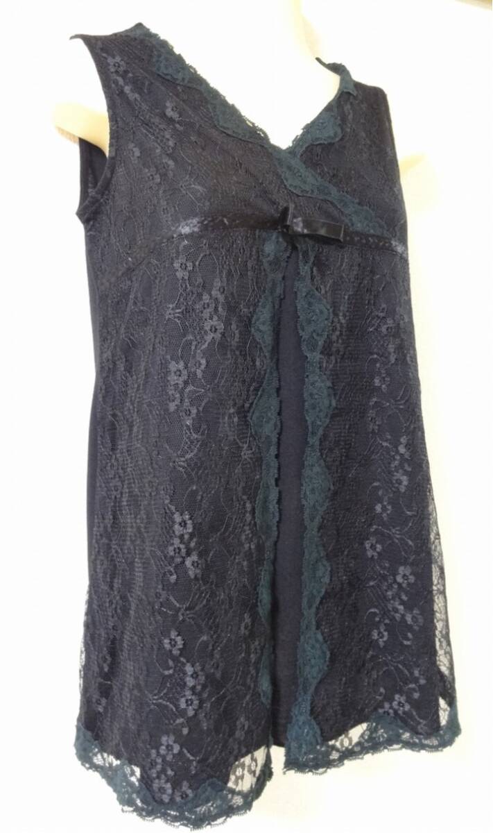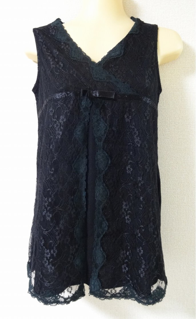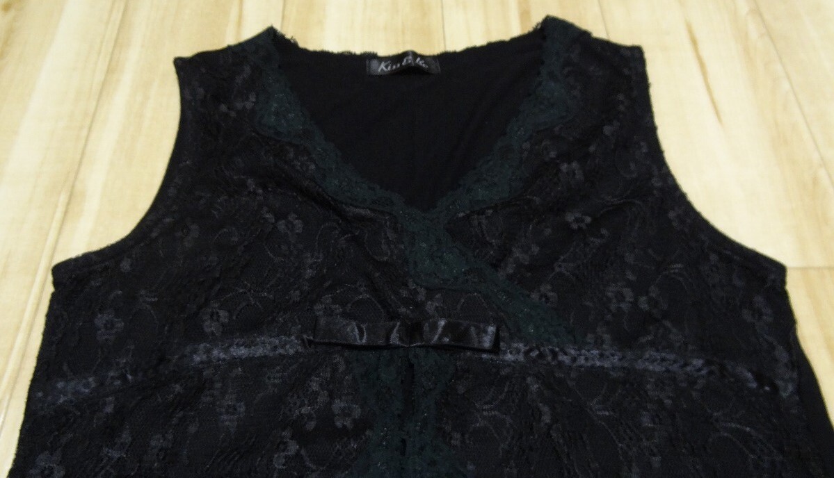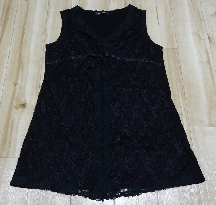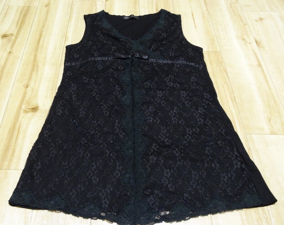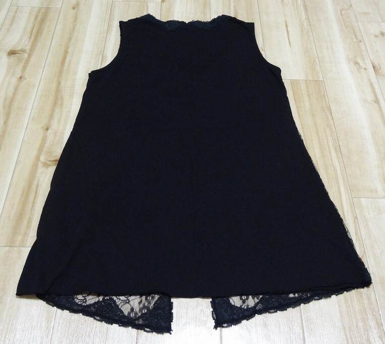 ◆ ノースリーブ レース カットソー 黒 ◆ Mサイズ タンクトップ 袖なし チュニック ブラック ◆ USED ◆