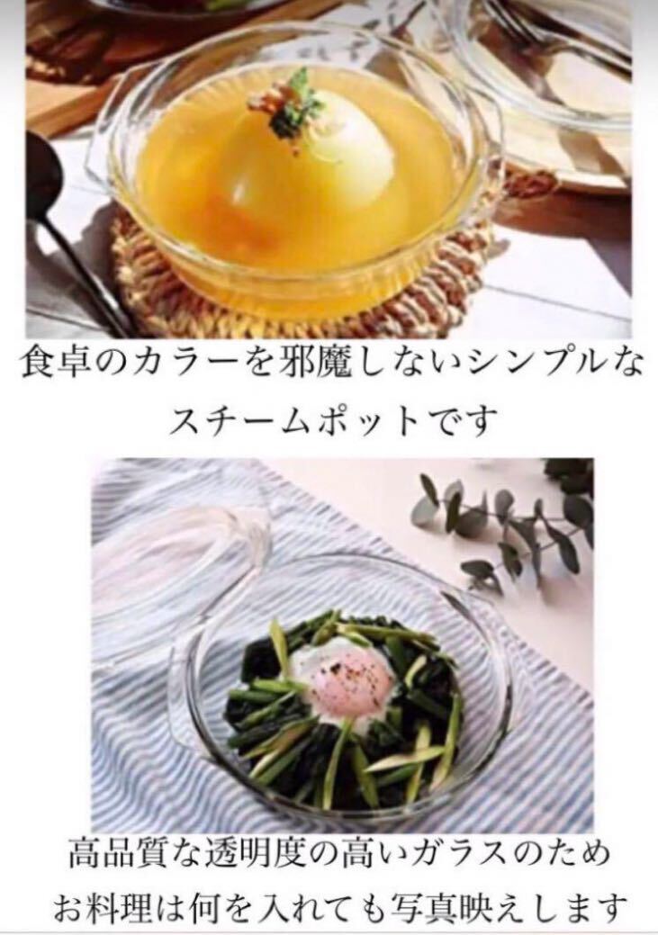 透明度の高いクリアガラスなので、食卓や他の食器との相性も抜群です。食卓のカラーを邪魔しないシンプルなスチームポット。食材の重なりを確認できますので、色合いなど楽しみながら調理、お食事して頂けます。写真映えも。