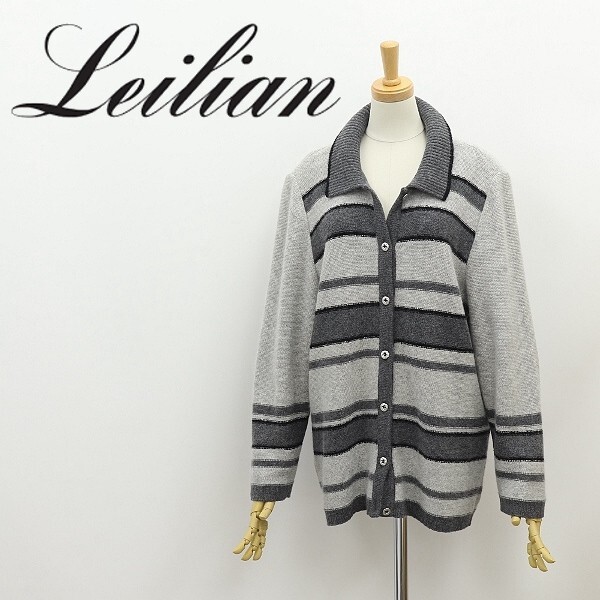 | ◆Leilian レリアン シルク混 マルチボーダー柄 メタルボタン ウール ニット カーディガン 9 | |