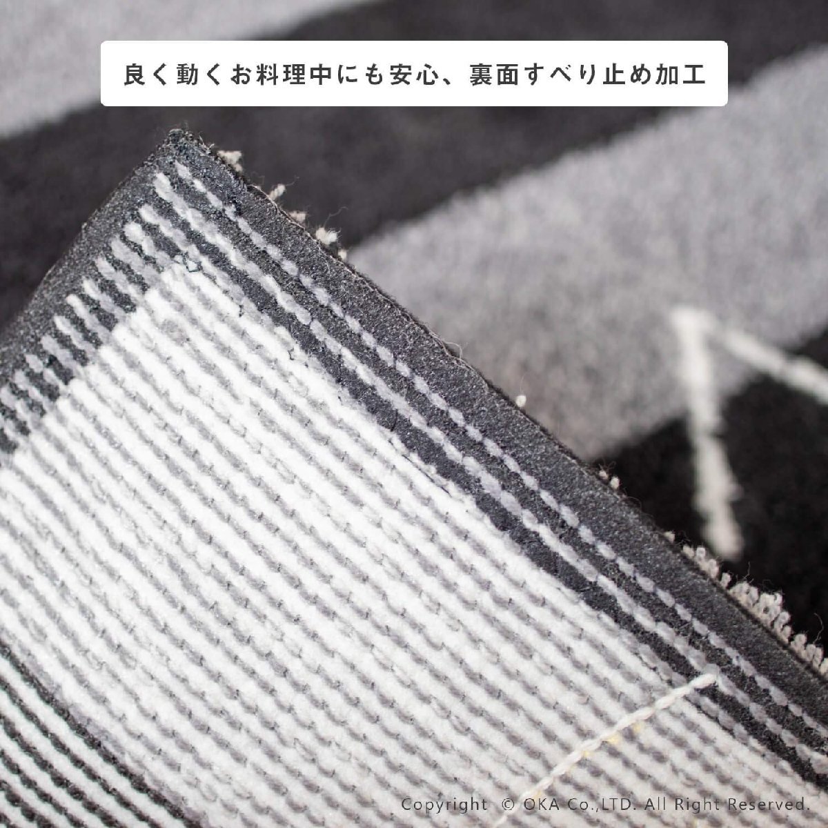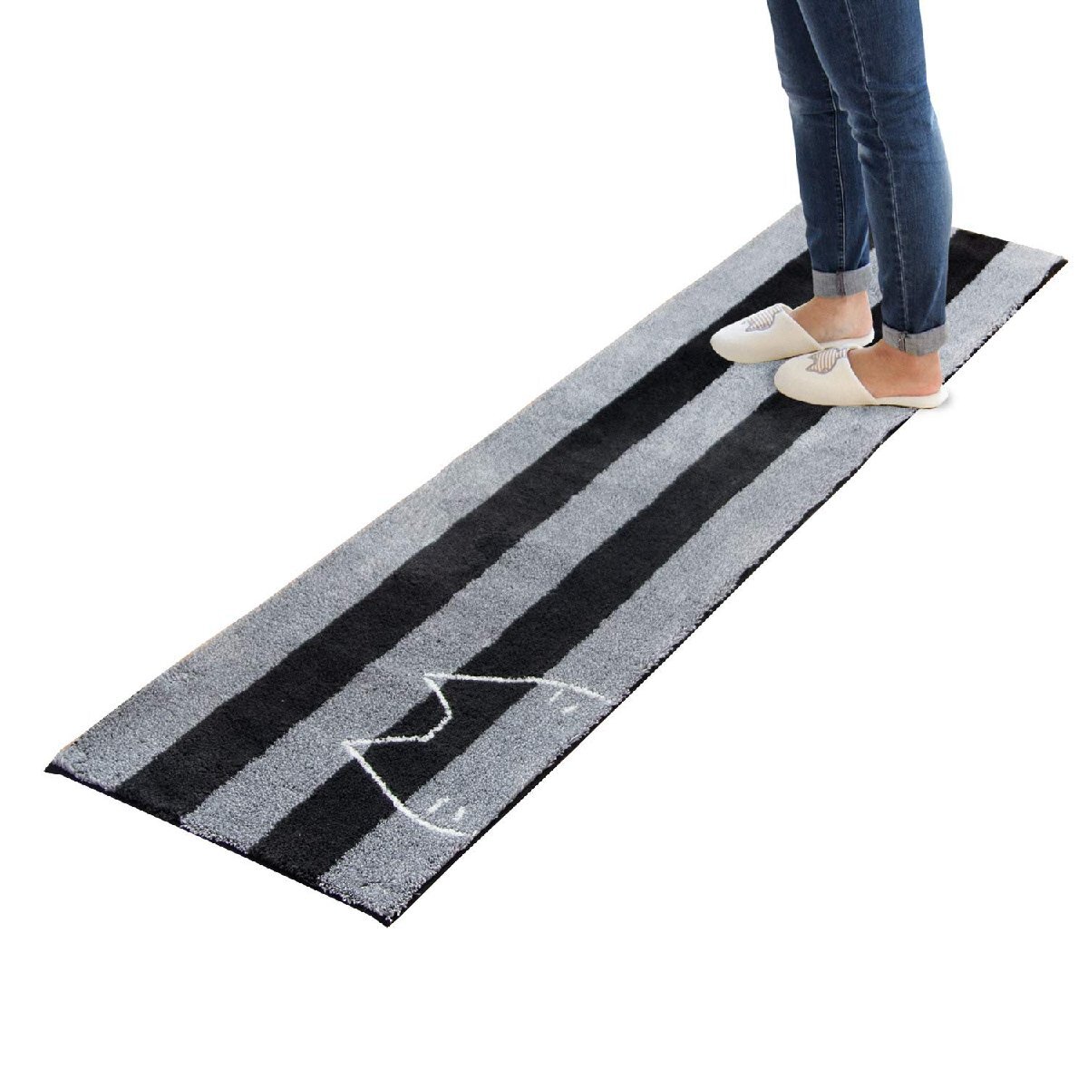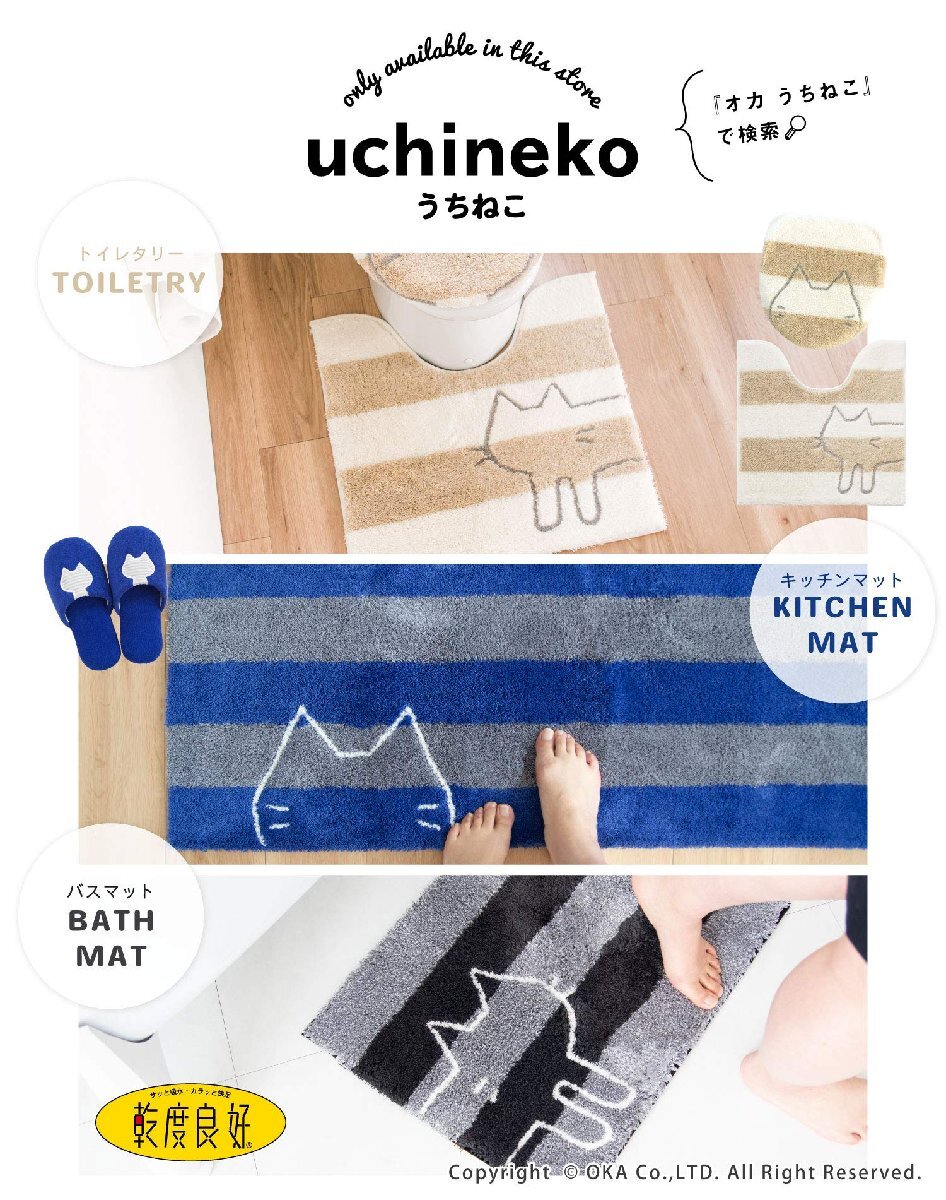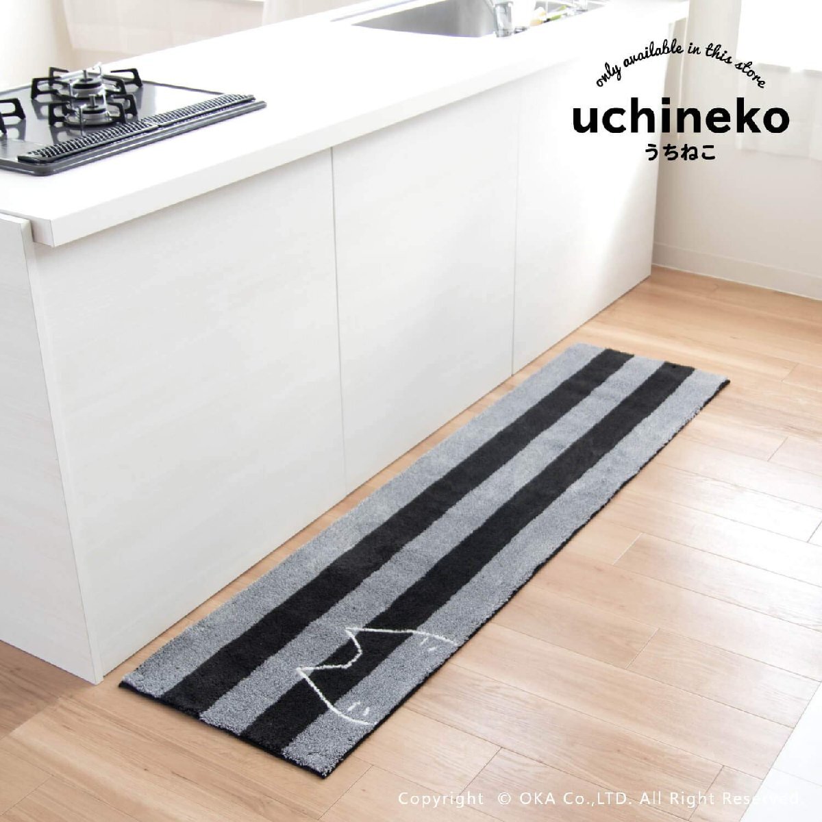 ・グレー 4. キッチンマット 約45×180cm 4548622991154・Size:4. キッチンマット 約45×180cmColor:グレー・サイズ:約45cm×180cm・マットの厚さ: 約15mm・素材:アクリル100%・裏面すべり止め加工・生産国:中国説明 おうちにネコが住み着いた! そんなほのぼのした雰囲気の限定「うちねこ」シリーズキッチンマットに45cm×240cmのサイズができました! 45cm×120cm、45cm×180cmの合計3サイズ展開になり、様々なサイズのキッチンに対応できるようになりました。 太めのボーダーにくしゅくしゅとした糸を使って大きなネコの糸をデザイン。 ネコがひょっこりとこっちを見ているようでとっても可愛いキッチンマットです。 カラーはホワイトとブルーの2色をご用意しました。ベージュとグレーの部分は2食の糸をミックスしたニュアンスのある仕上がりになっています。 細かいアクリル糸を使っているのでふわっとした優しいさわり心地。 だけどコシのある糸なので、しなやかでへたりにくいマットです。 ミシンで1枚1枚大切に手作りしています。