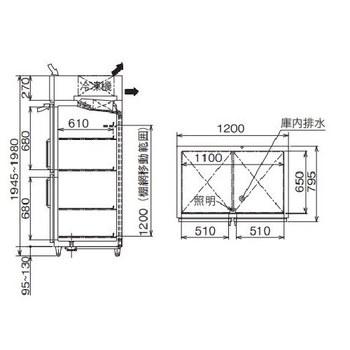 外形寸法:幅1200×奥行795×高さ1950(mm)