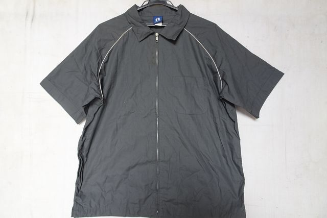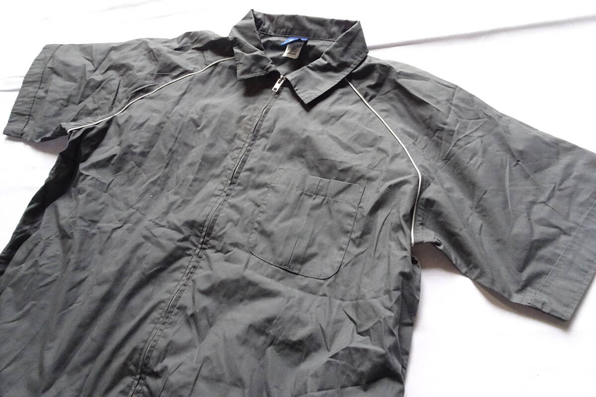HANG TEN/ハンテン/半袖シャツジャケット/前ジップアップ/袖ぐりライトグレーパイピング/裾サイドスリット/グレー/Mサイズ(9/19R)