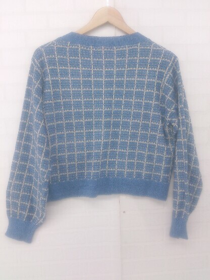 ◇ earth music&ecology ツイード エレガント ニット 長袖 カーディガン サイズF ブルー ホワイト レディース E