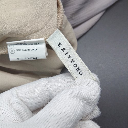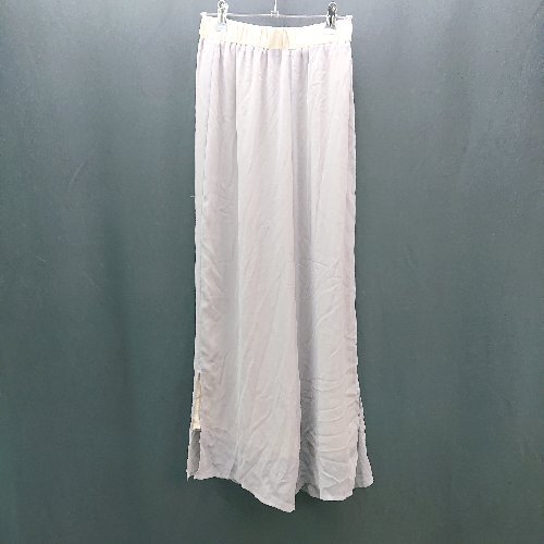 ◇ BITTOKO ビットコ ウエストゴム レース 裏地 スリット 薄手 シンプル パンツ サイズ38 グレー ベージュ レディース E
