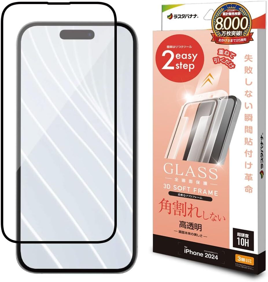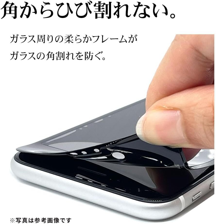 【柔軟PETフレーム採用】柔らかい素材のPETフレームと傷に強いガラスを一体化。ガラス周囲の柔らかいPETフレームが角からの落下や衝撃によるガラスの角割れを防ぎます。