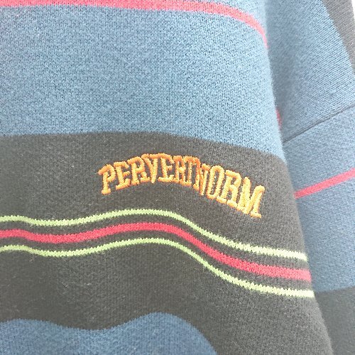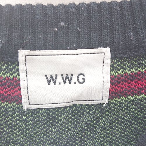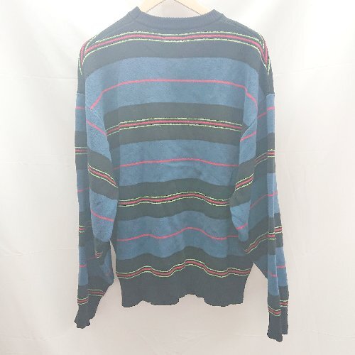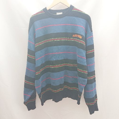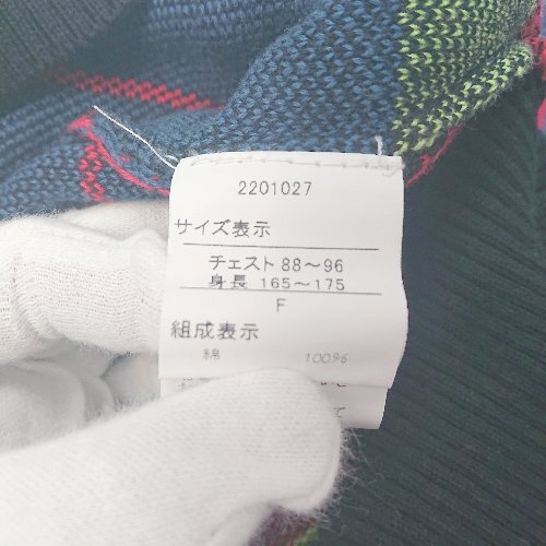 ◇ WHO'S WHO gallery フロント刺繍 マルチカラー コットン 長袖 ニット セーター サイズF ブルー メンズ レディース E 1