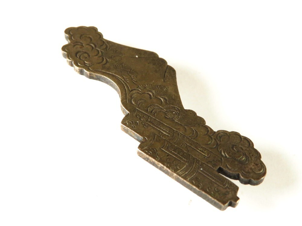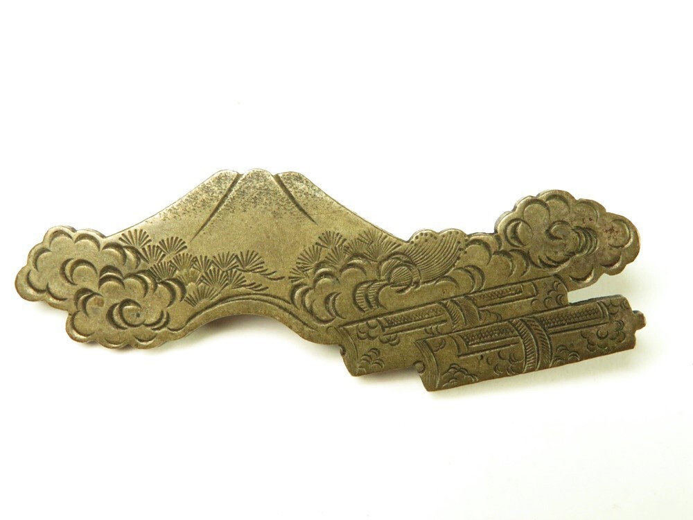 ●江戸~明治 堤物・刀装具 銅製 富士山 彫金 金具になります。古い物ですが極力状態の良い作品を出品しておりますので是非ご覧ください。 【状態】 ●経年を考慮し状態はよいと思います。 【サイズ(約)】 ●4.6×1.5㎝ (素人寸法ですので、若干の誤差はお許し下さい) 【重量(約)】 ●8g 【領収書に関しまして】 領収書発行は致しておりません。 Yahoo!かんたん決済手続き完了時の確認画面をプリントアウトして領収書としてお使い下さい。 ※領収証として税務署に認められております。 ご了承のうえでのご参加をお願いいたします。 |