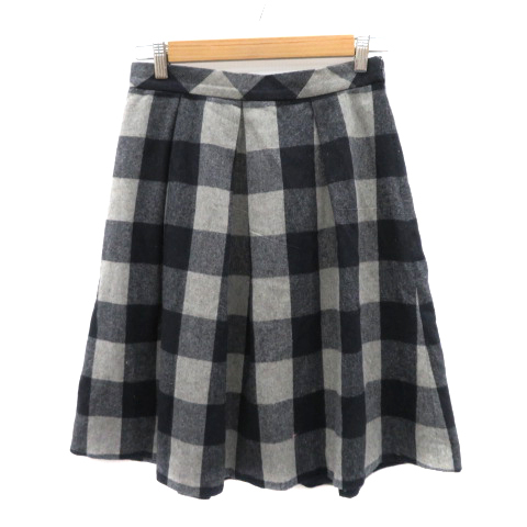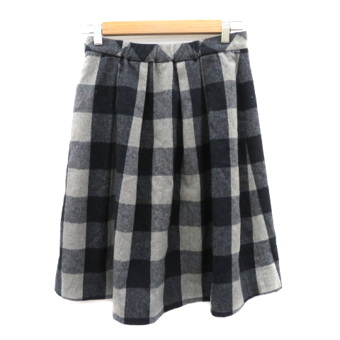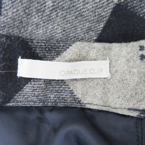 オペークドットクリップ OPAQUE.CLIP フレアスカート ギャザースカート ミモレ丈 ギンガムチェック柄 40 L 紺 ネイビー レディース