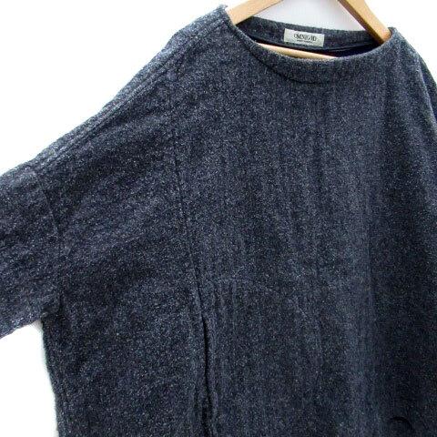 オムニゴッド OMNIGOD ニット カットソー ボートネック 五分袖 無地 オーバーサイズ 2 M グレー /HO17 レディース