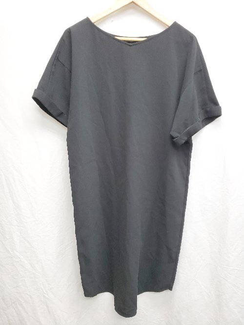 ◇ ⊂ ADAM ET ROPE' シンプル ゆったり 袖ロールアップ 半袖 膝丈 ワンピース サイズF ブラック レディース P