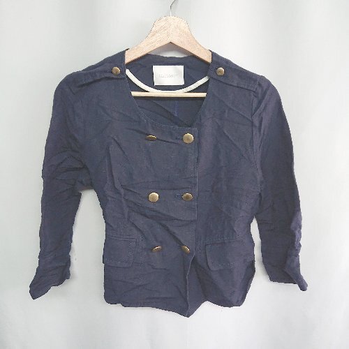◇ シャンデリエ Chandelier リネン系 肩ひも付き 長袖 ジャケット サイズXS ネイビー系 レディース E