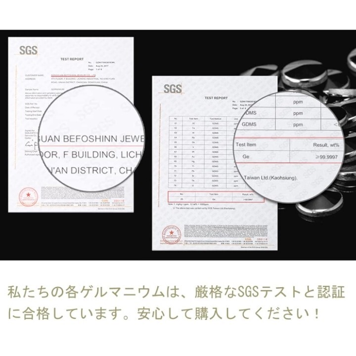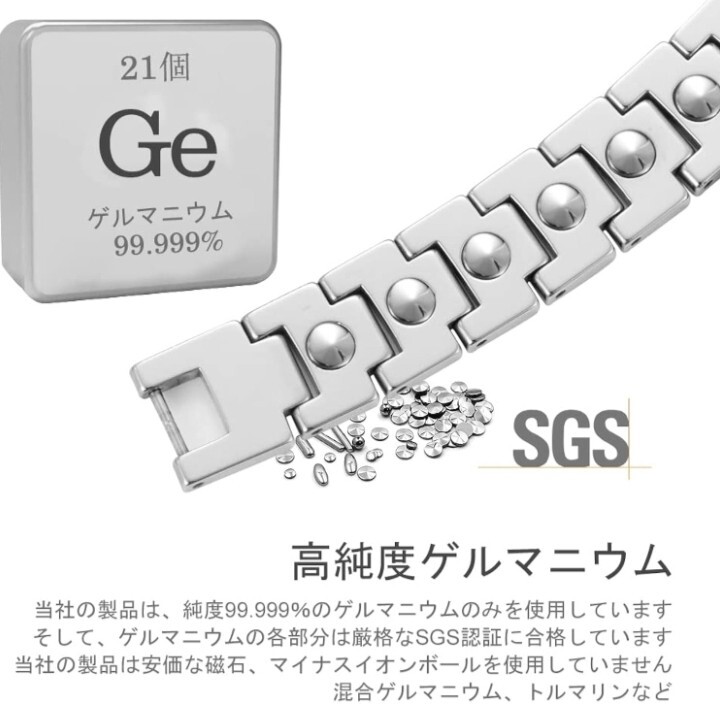 【21粒ゲルマニウム】:このメンズブレスレットには、純度99.999%の21ゲルマニウムがちりばめられています。 SGSのテストと認証(写真)。研究によると、ゲルマニウムは温度が32°Cに達するとマイナスイオンを放出することがわかっています。