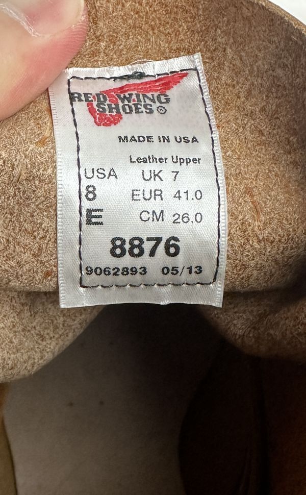RED WING SHOES レッドウィング 8876 US8 約26cm 6インチ クラシックモック レッドブラウン Uチップ ブーツ 加工