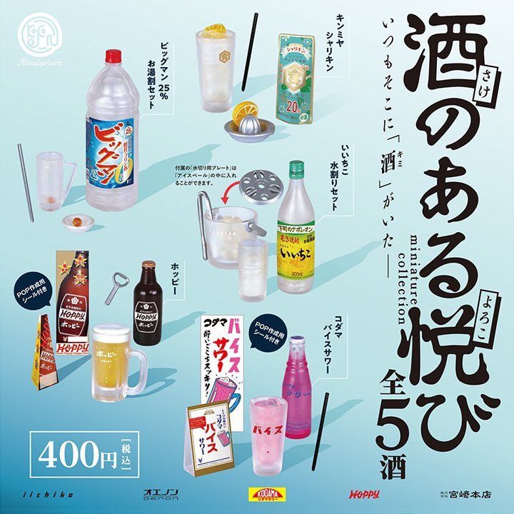 ケンエレファントより「酒のある悦び」全5種セットのうち「キンミヤ シャリキン」になります。即決有りです。一個400円ガチャで精巧に造形されています。全て内袋未開封、リスト付きです。