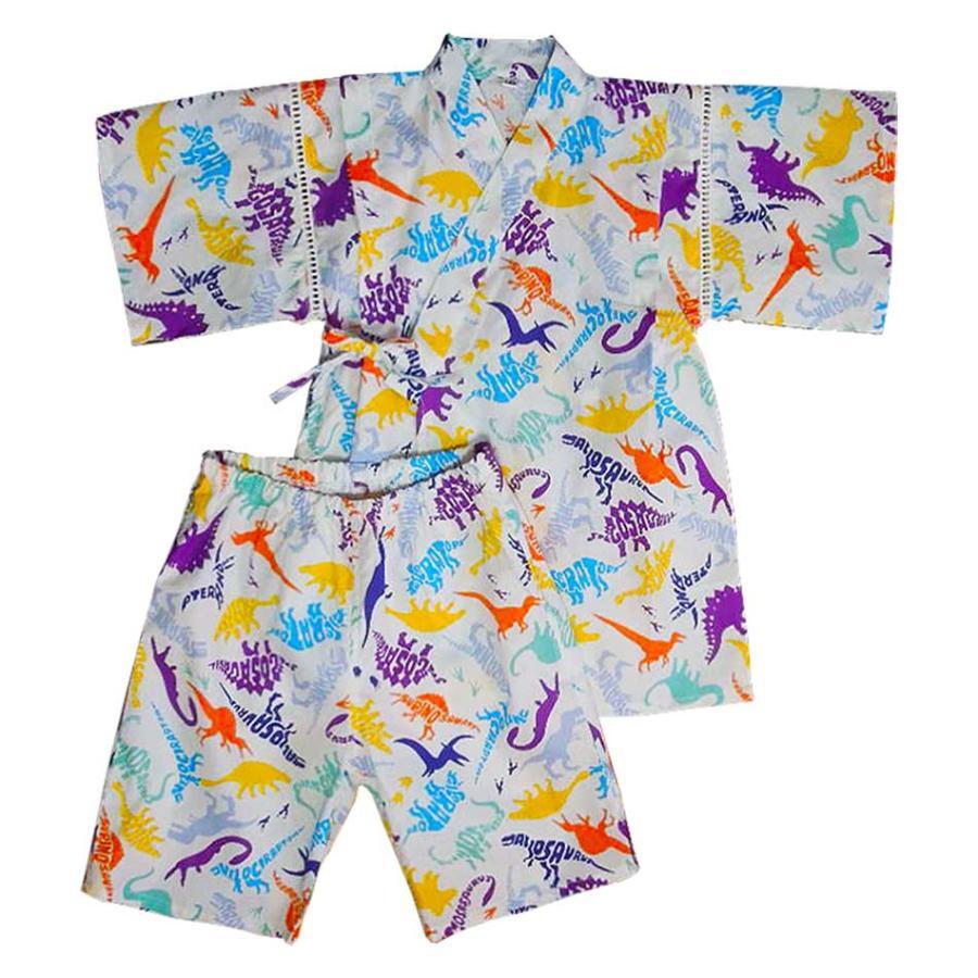 ☆新品未使用☆ キッズ 白 120 甚平 子供用 男の子 じんべい 2点セット 91000 恐竜柄 綿100% 中国製