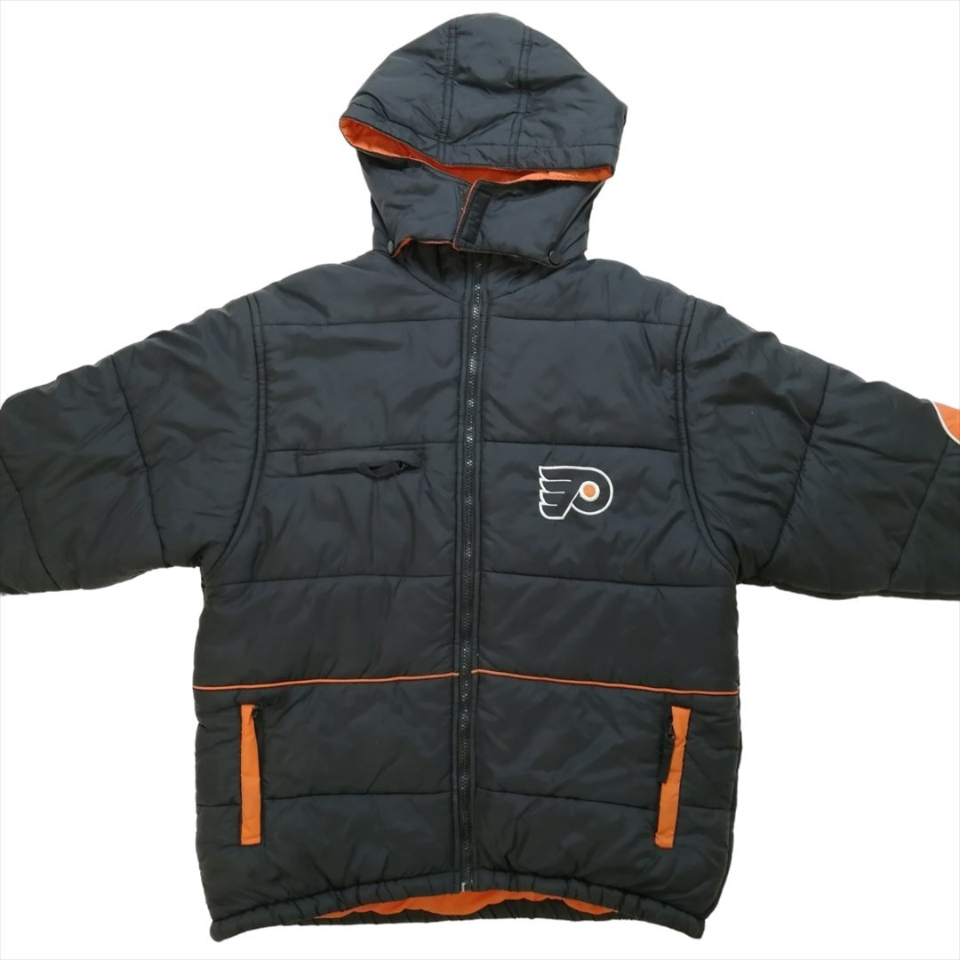NHL フィラデルフィア・フライヤーズ ナイロンジャケット ブラック 古着 レディース XL ホッケー 中綿 クリーニング済み serb7177