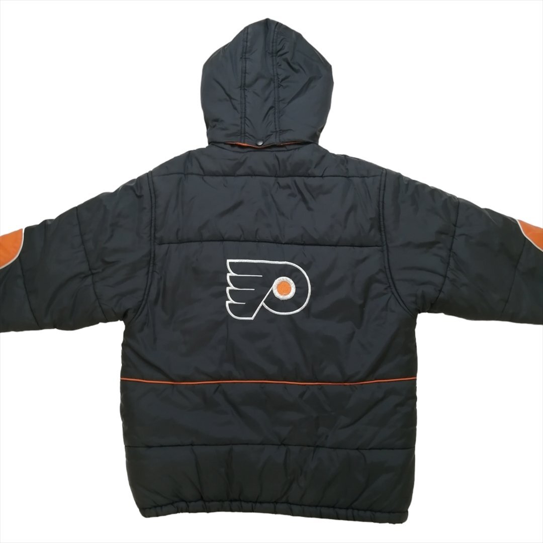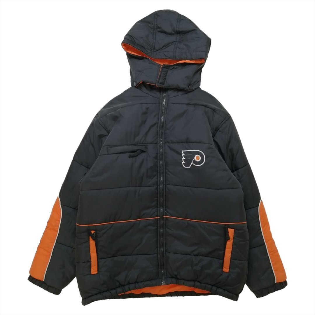 NHL フィラデルフィア・フライヤーズ ナイロンジャケット ブラック 古着 レディース XL ホッケー 中綿 クリーニング済み