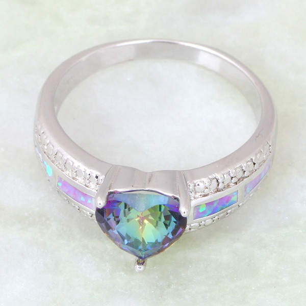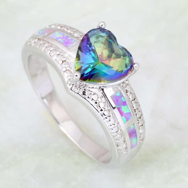 ハート型のミスティックトパーズがキラキラが綺麗で可愛い★ ピンクファイヤーオパールとのコンビが美しい純銀リングです♪ 14金ホワイトゴールド仕上げになります。 |
