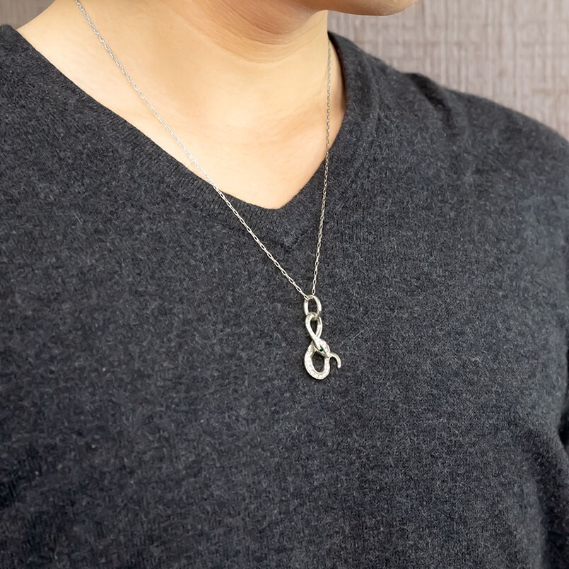 商品コード 200227100dewim 発送は3週間ほどです立体感と柔らかなシルエットが特徴の大人のアミュレットネックレス幸福を招くヘビモチーフに、インフィニティと&を掛け合わせたダブルミーニングの個性的で存在感のあるジュエリー裏面に文字入れも可能なので、願いを刻んでみては…材質ペンダント ホワイトゴールドk10(品質を保証するk10の刻印)ネックレス シルバー925(全長 50cm)※サービスチェーンのデザインは予告なしに変更する場合がございます宝石名天然ダイヤモンド 1/70ct 1石・1/120ct 12石・1/200ct 5石 トータル0.14ct天然石 1.2ミリ 2石(エメラルド ルビー サファイア)※3石からご希望の宝石をお選び下さい大きさ蛇 最大幅 約26×15ミリバチカン内径 約5×5ミリバチカン込大きさ 約32ミリネックレス メンズ ホワイトゴールドk10 k10 10k 10金 選べる天然石 ダイヤモンド 大人 ヘビ 蛇 スネーク インフィニティ 無限 ∞ アンド & ネックレス ペンダント ジェンダーレス メンズアクセサリー ギフト プレゼント 贈り物 宝石 フリースタイル ニッケルフリー ユニセックス LGBTQ 男女兼用 ジェンダーフルイド バディジュエリー 福袋