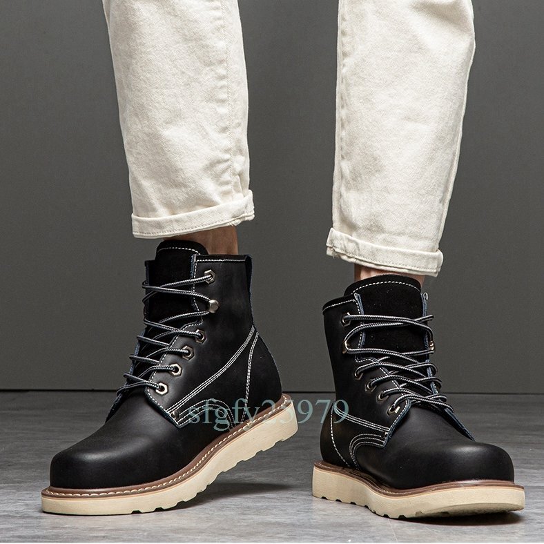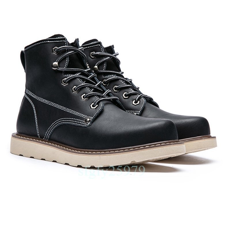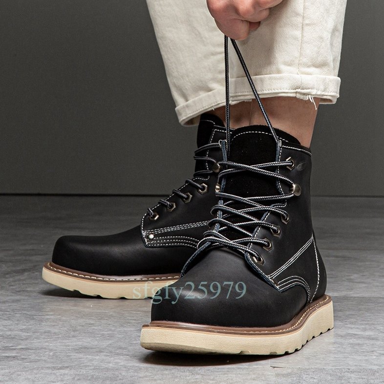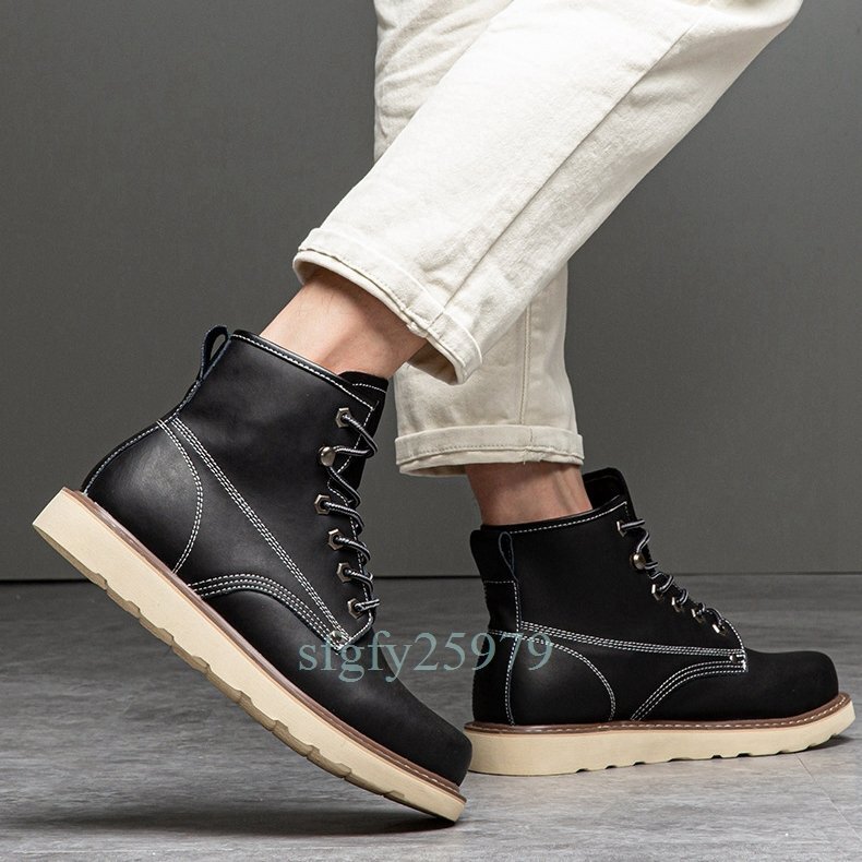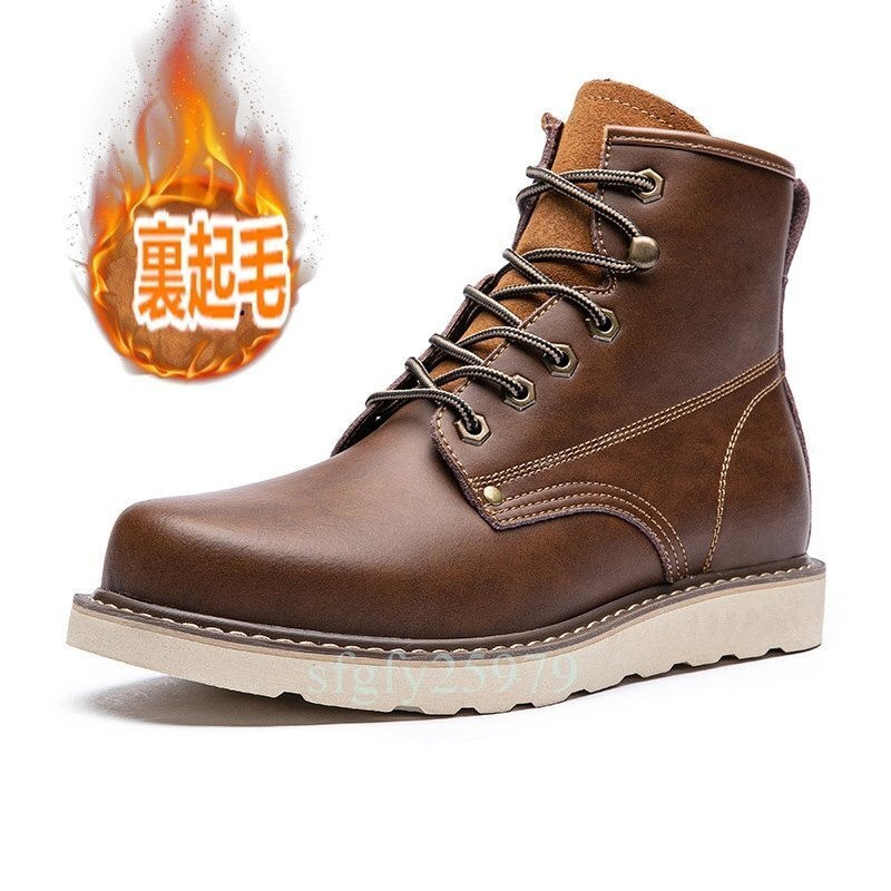 A87☆新品本革 ブーツ ウォーキングシューズ シューズ ショートブーツ メンズ バイク靴 大きいサイズあり 保温 暖か 裏起毛24~29.5cm