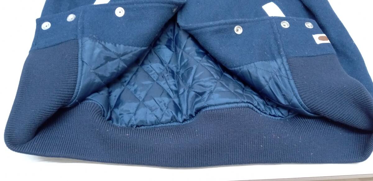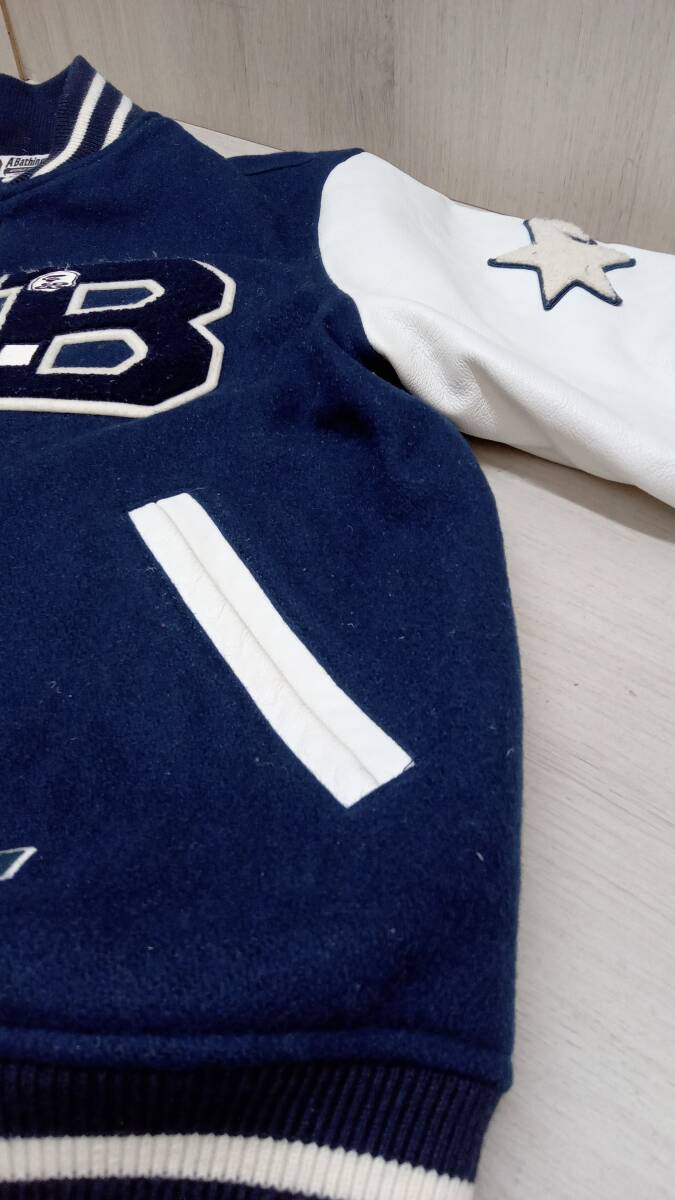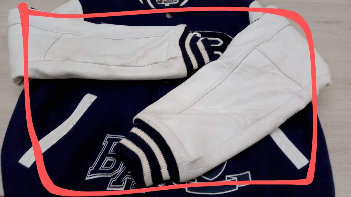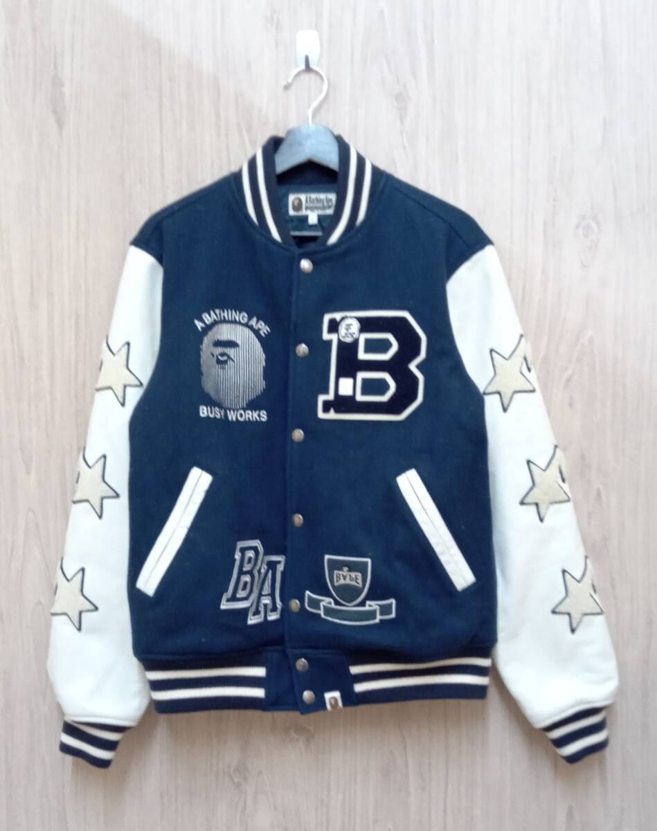 | ・ブランド A BATHING APE/アベイシングエイプ ・カテゴリ スタジャン/001HJB801017X/LETTERED VARSITY JACKET ・カラー ネイビー系 ・サイズ Lサイズ 着丈約66cm 袖丈約65cm 身幅約52cm 肩幅約46cm ・付属品 なし ・状態 全体的に使用感あり 袖に傷汚れあり(写真5) リブ部分毛玉あり(写真6.7) |