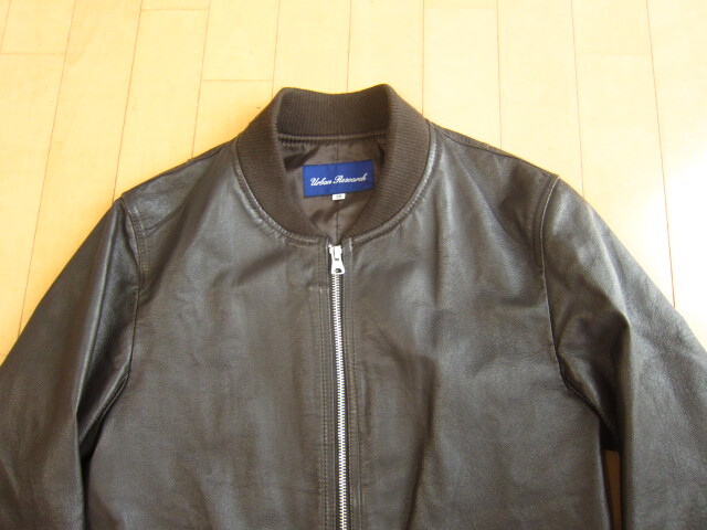 アーバンリサーチ MA-1タイプ レザージャケットです。人気の豚革です。色は焦げ茶です。本品サイズバランスが良く、非常にかっこいいです!サイズ38でM相当だと思います。実寸より判断下さい。肩幅約41cm、袖丈約63cm、着丈約61.5cm、身幅約49cmです。ほとんど使用していなかったので、きれいな状態のものだとは思いますが、神経質な方は入札をお控えください。ノークレーム ・ノーリターンでお願いします。発送はヤフネコパックを予定しています。