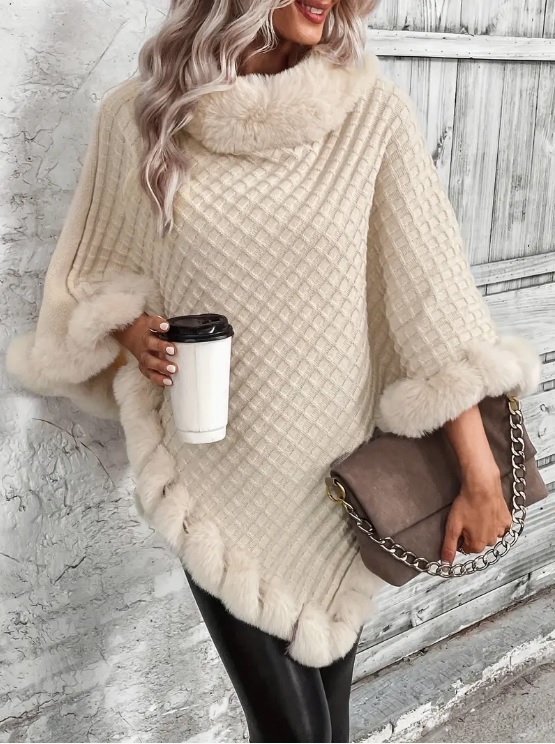 入荷!キレイめ ニットセーター ポンチョ ふわもこ M~L