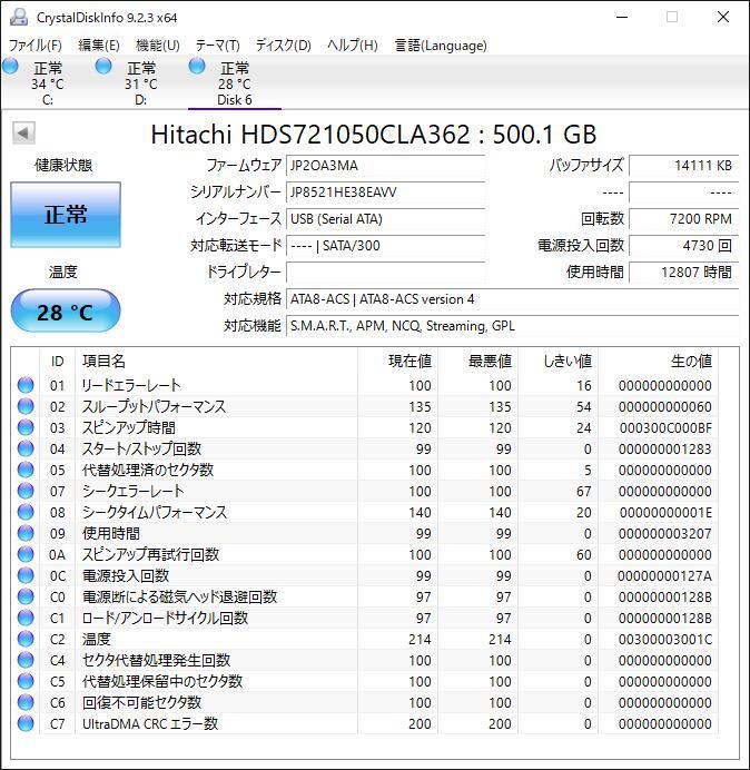 C6 100 100 __0 000000000000 回復不可能セクタ数
