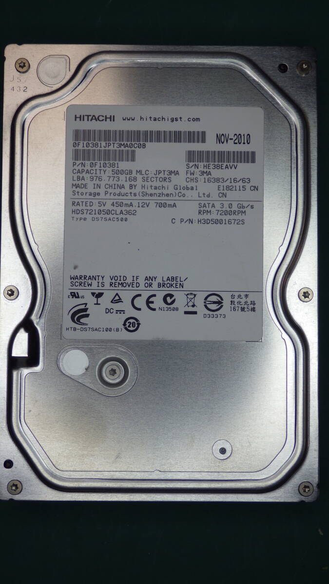 Hitachi HDD SATA HDS721050CLA362 500GB 動作確認済 送料無料(500051)