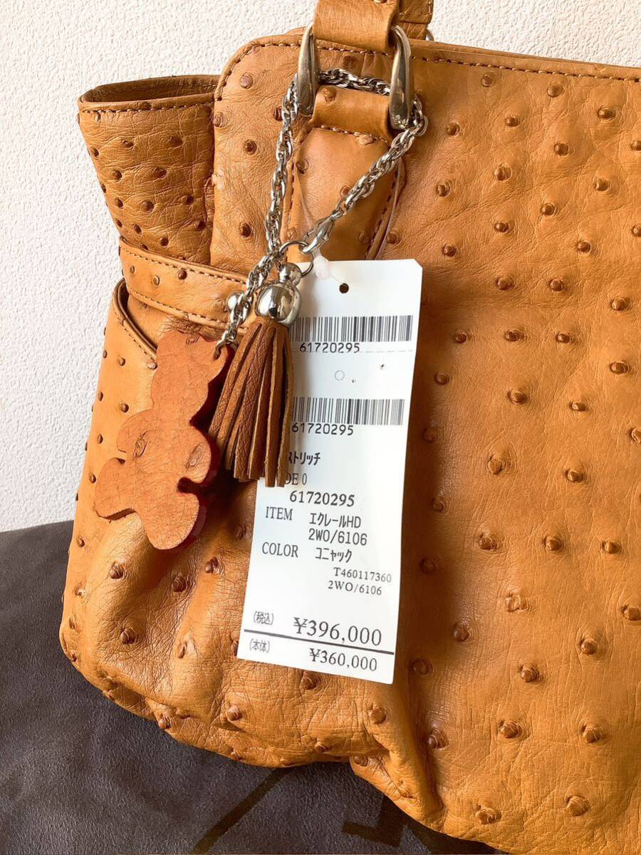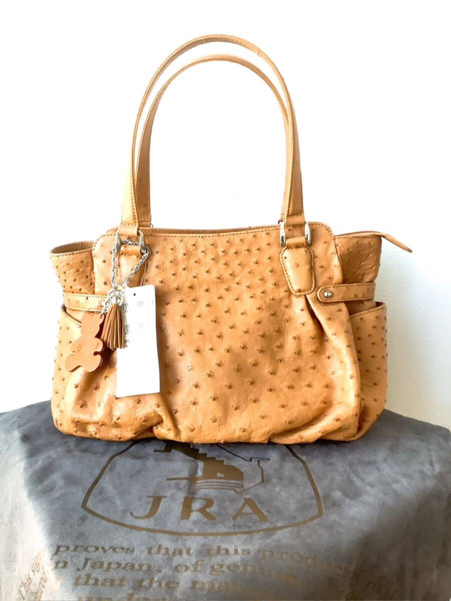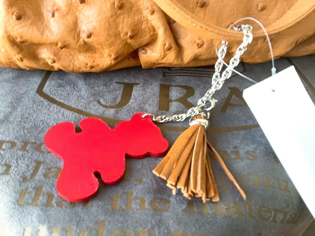 JRA商品【本革オーストリッチ】日本製 ハンドバッグ キャメル テディベア&タッセルチャーム付き 定価396000円 | |||