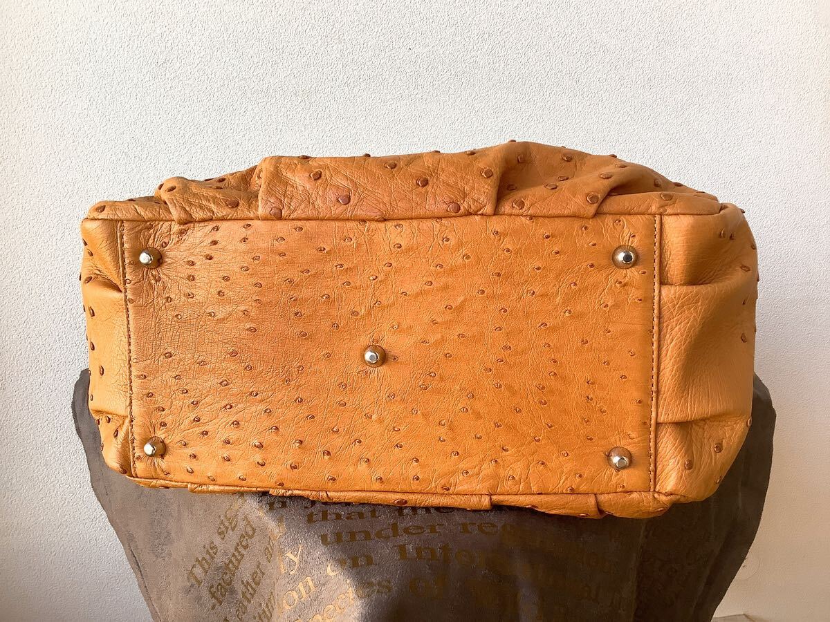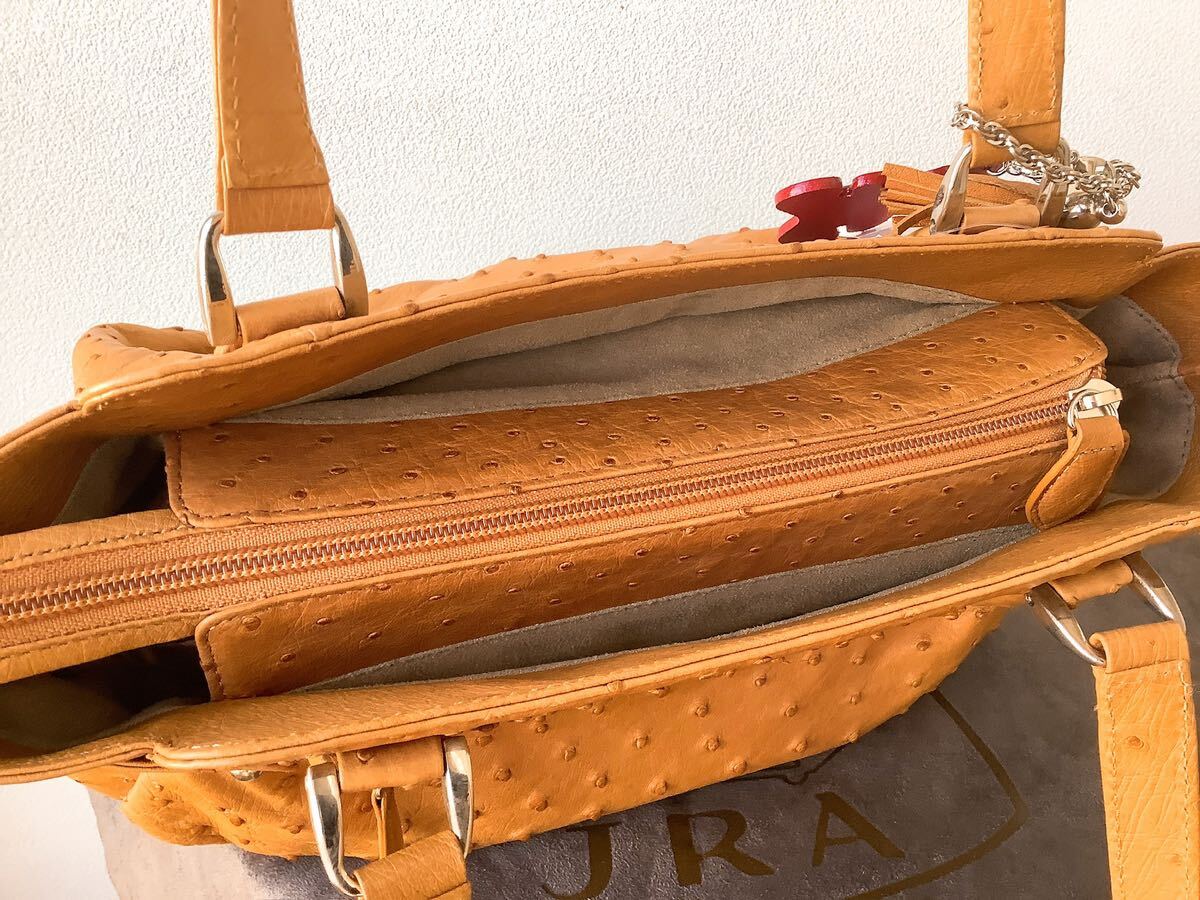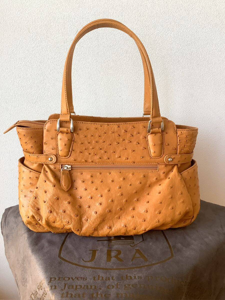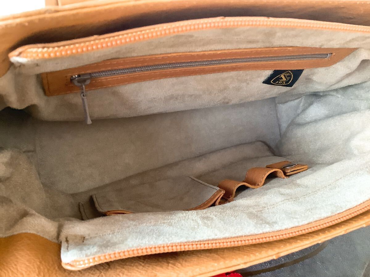 JRA商品【本革オーストリッチ】日本製 ハンドバッグ キャメル テディベア&タッセルチャーム付き 定価396000円 | |||