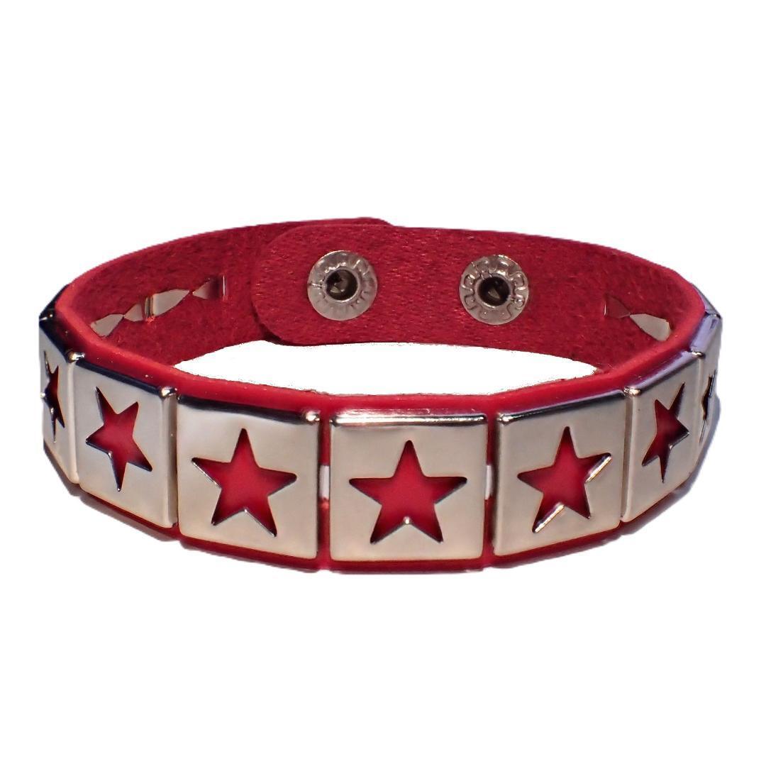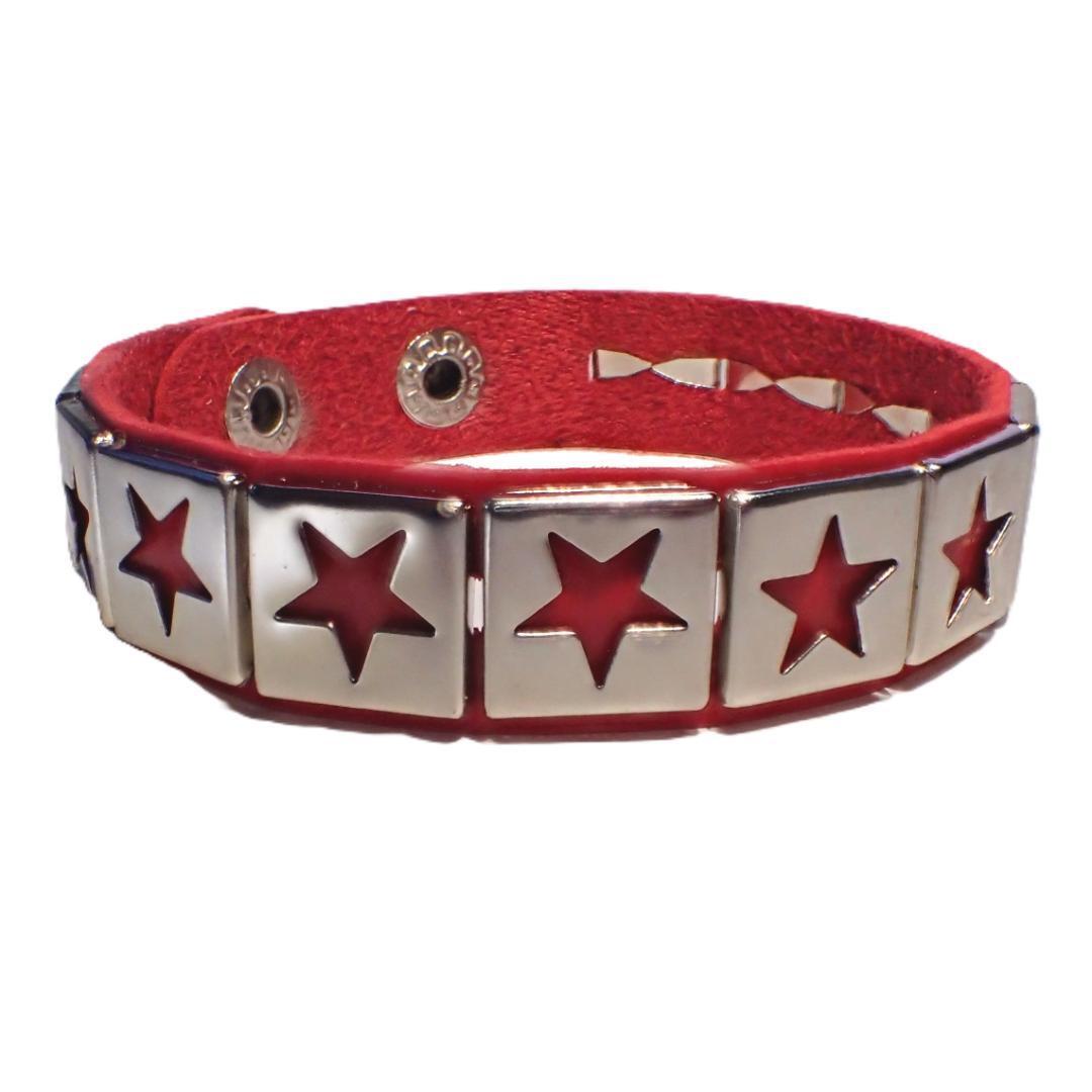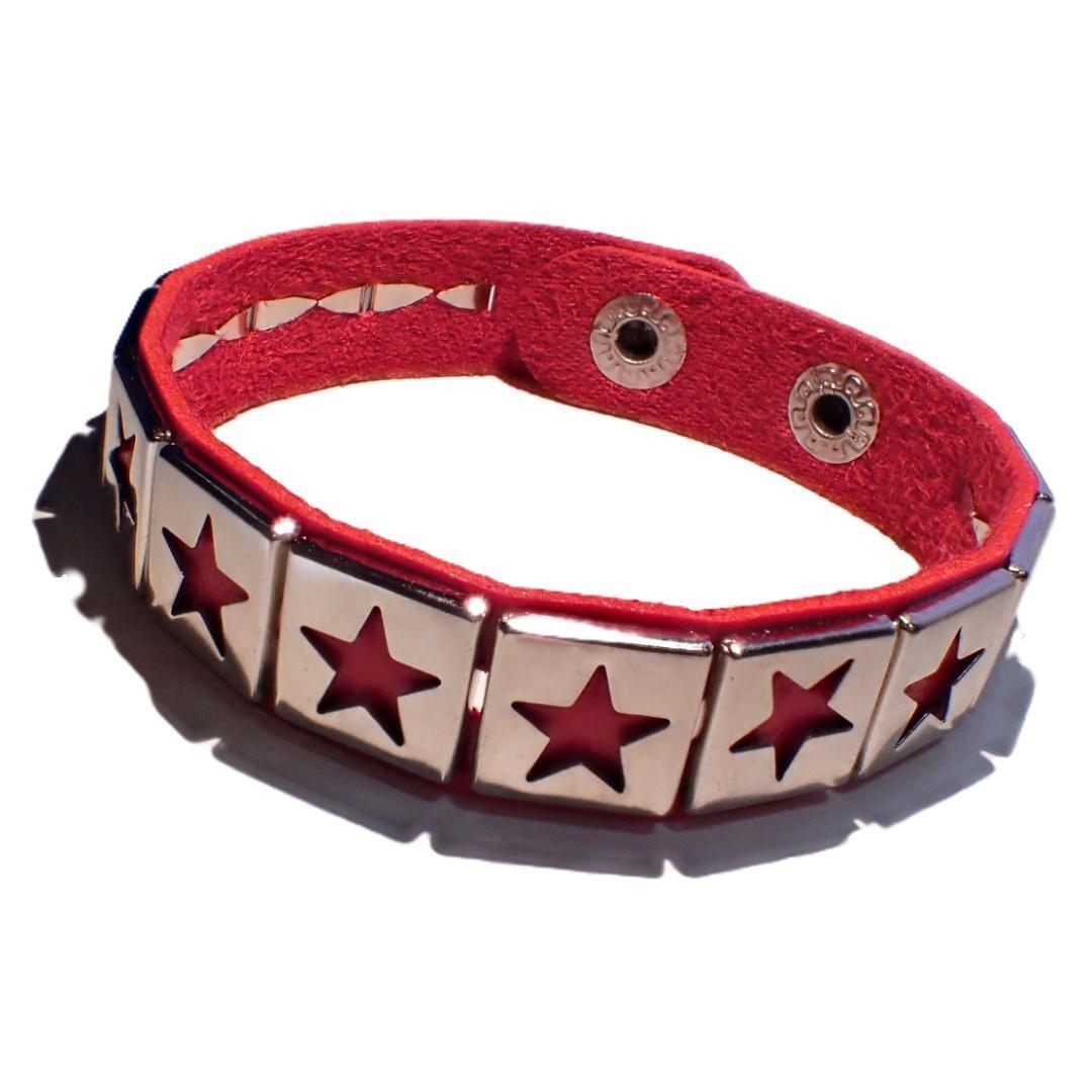 スタッズ 鋲 星 スター 1列 レザーブレスレット ブレスレット アクセサリー バングル リストバンド ロック パンク 赤色 ②