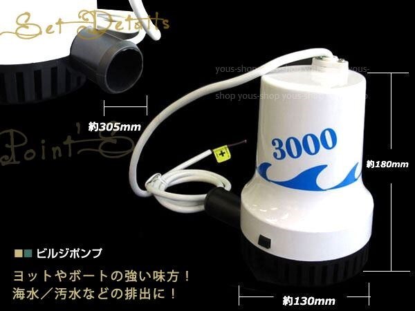 ビルジポンプ 3000GPH DC12V 水中ポンプ 排水 船舶 ヨット 釣り