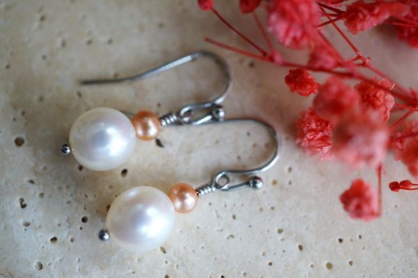 淡水真珠ホワイト 高さ 8ミリ 横 8.5ミリ 程度
