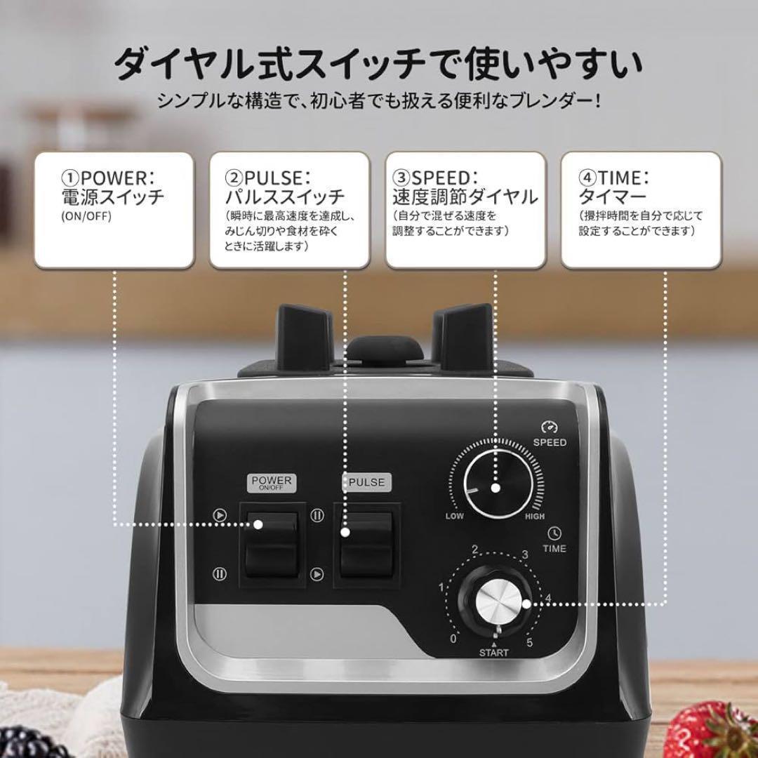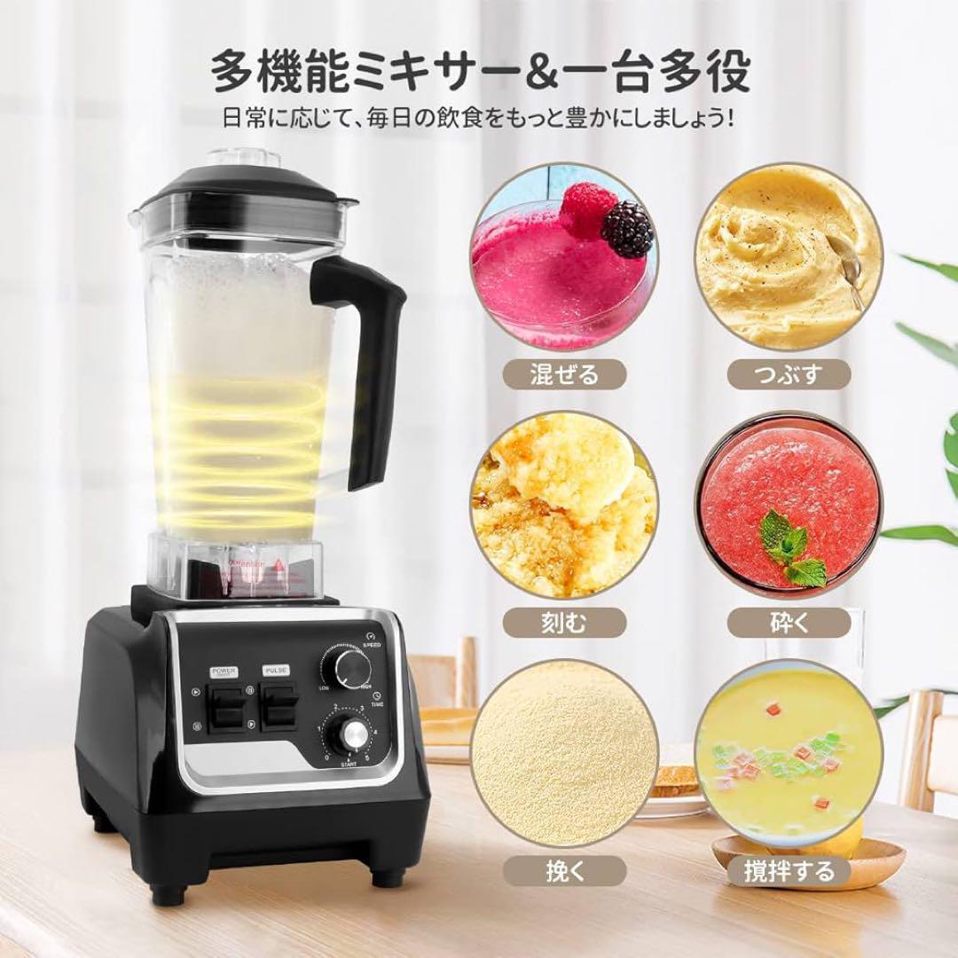 【ハイパワー&6枚刃】1400Wのハイパワーで、最高26000r/minの回転数があり、高速になればなるほど、食材が滑らかになります。低パワーの製品に比べ、おいしく仕上がります。6枚のステンレス鋼製の刃は、驚きの粉砕力で、食料を細かく刻む必要がなく、360°回転することができ、優れた攪拌力を発揮し、バナナ、イチゴ、野菜などはもちろん、繊維質の多い果物や豆類、氷、種などの硬い食べ物も簡単に粉砕できます。