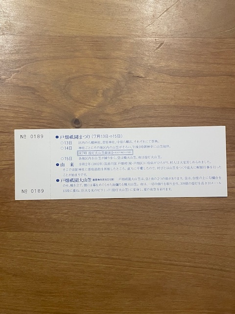 戸畑祇園提灯大山笠競演会30周年記念乗車券 (管理番号70-35)