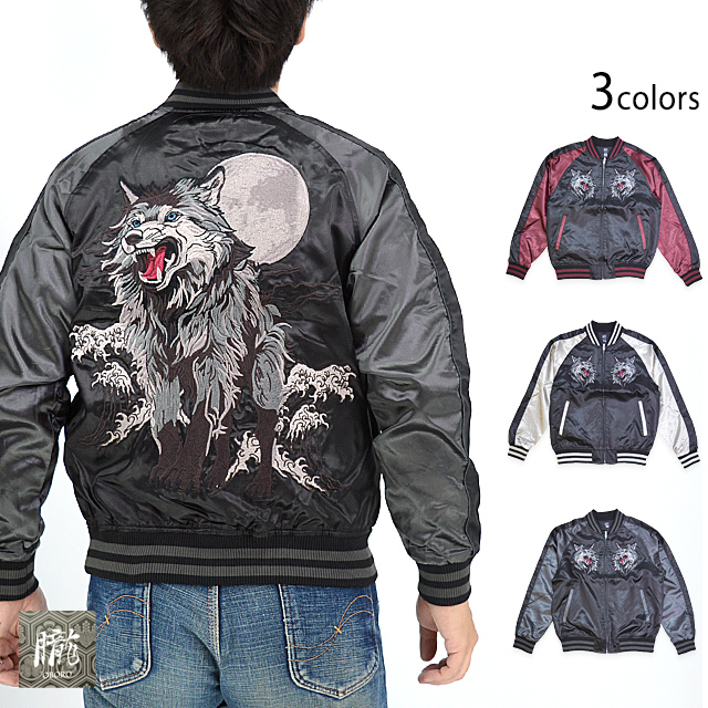 刺繍に定評のある古舗ブランド、華鳥風月の姉妹ブランド「朧」から「狼サテンスカジャン(9043813)」のご紹介です! カジュアルなサテン生地を使用し、気軽にお楽しみ頂くことの出来るスカジャンを製作しました。 今回、モチーフの主役に採用されたのは、前回人気を博した和柄モチーフでは珍しい【狼】柄。 カラーは選べる3色。それぞれのボディーカラーによって、雰囲気も少しずつ変わります。 1枚持っているだけでずっと使えるアイテムです。 | ||||||||||||||||||||