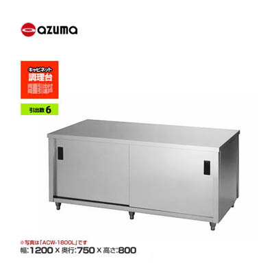 ■メーカー:東製作所 ■品名:調理台 [両面引出付 両面引違戸] ■型番:ACWO-1200Y ■外形寸法(mm):幅1200×奥行750×高さ800 mm ■バックガード:なし ■引出数:6 ■質量(kg):59 ■備考:・棚板1枚入 ・ABS樹脂製引出し取っ手 | |