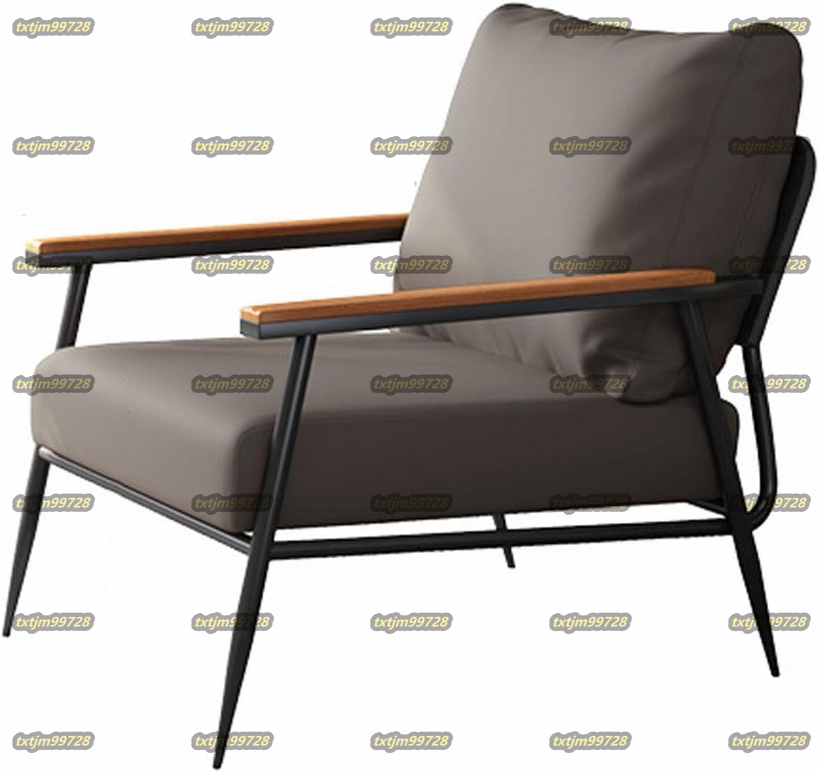 リビングルーム用のアーム付きモダンなアクセントチェア、寝室用のシングルソファ、布張りの読書快適なアームチェア、金属と木製 グレー