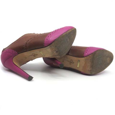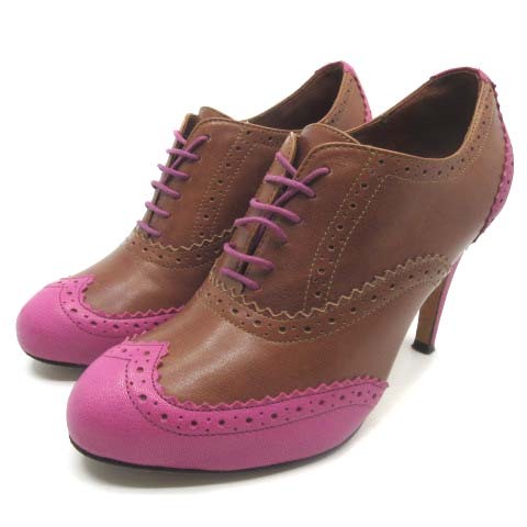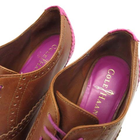 コールハーン COLE HAAN レザー ウイングチップ ブーティ LUCINDA AIR. OX. PUMP バイカラー ブラウン ピンク 5.5B 約22.5cm レディース