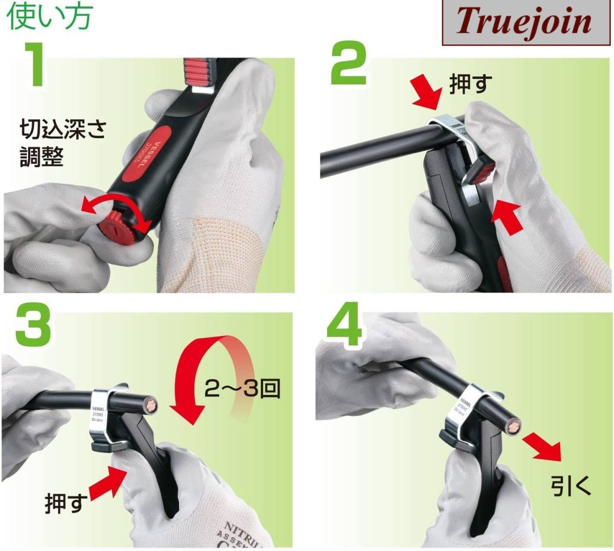 ケーブルストリッパー ケーブル被覆剥離用 くるっと回して引くだけ 簡単操作でケーブル被覆をストリップ