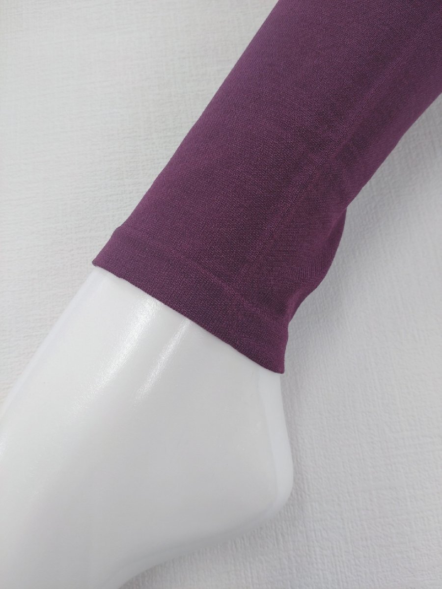 キュプラとは、コートやスーツなどの裏地や春夏の衣服に使われている素材です。特徴としては、シルクに似た高級感のある滑らかな肌触りで吸湿性と放出性に優れています。また、静電気が発生しにくいという特徴もあります。本来破棄される部分を使って作られた植物由来の再生繊維のひとつです。こちらのレギンスは、キュプラ糸を使用して編んだ商品になります。さらっとした肌触りにツルツルとした光沢感のある生地、吸湿性と放出性に優れているので汗を素早く吸収して発散してくれます。春夏にピッタリなレギンスです。カラー:ワインレッドサイズ:ML(ヒップ85~98cm 身長150~165cm)品質:キュプラ・ナイロン置き寸:総丈約88cm 股上24cmゴム入替口あり日本製定価3,800円*ほつれ等の訳あり品の為、大特価です*着用には問題ありません
