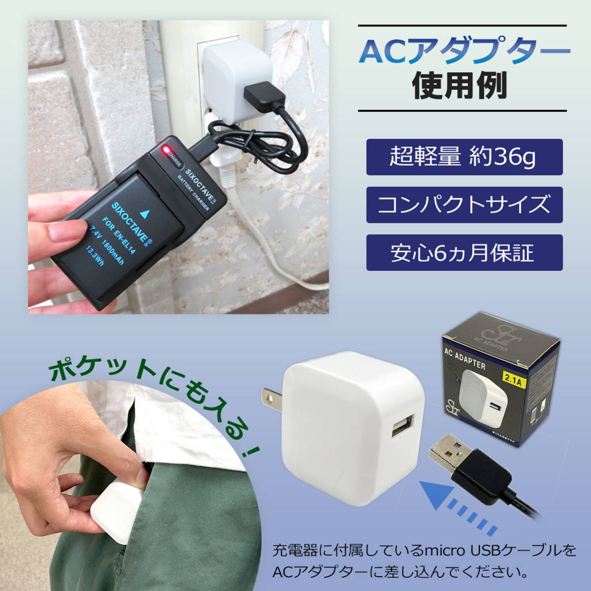 ・純正バッテリーの充電可能。