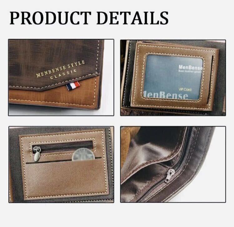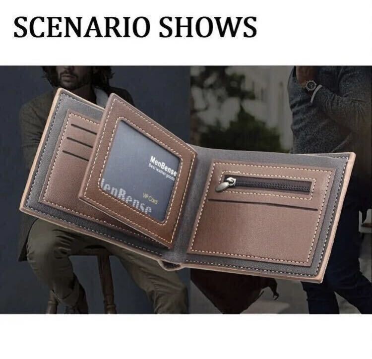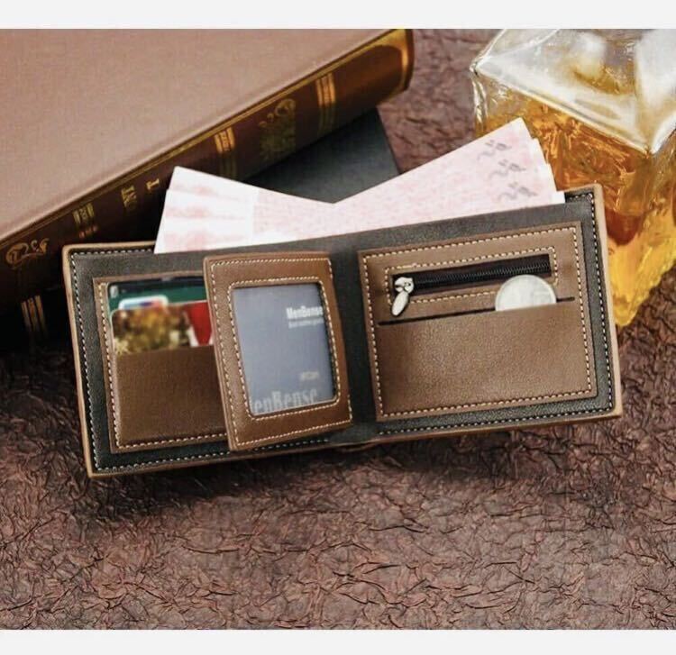 新作 折りたたみサイフ 二つ折りサイフ カードケース 小銭入れ ファスナー ブラウン系 お札入れ ウオレット 高品質