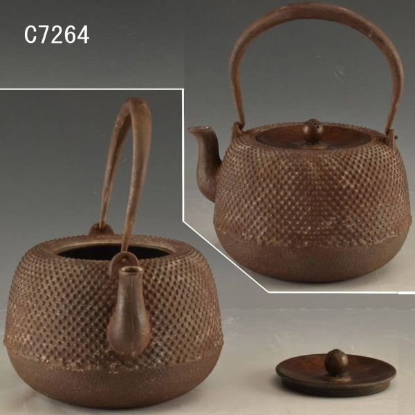 C07264 霰鉄瓶 蓋164g 本体1509g:真作。