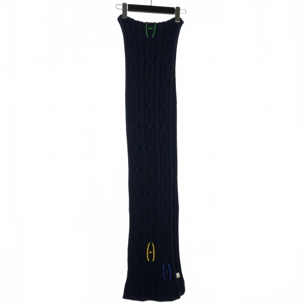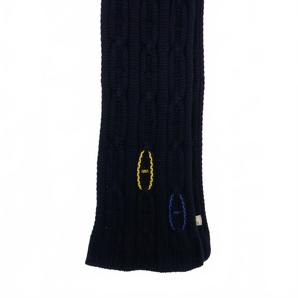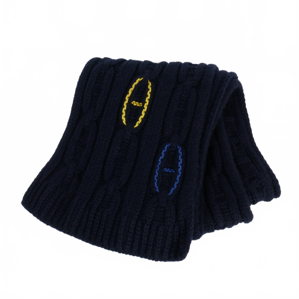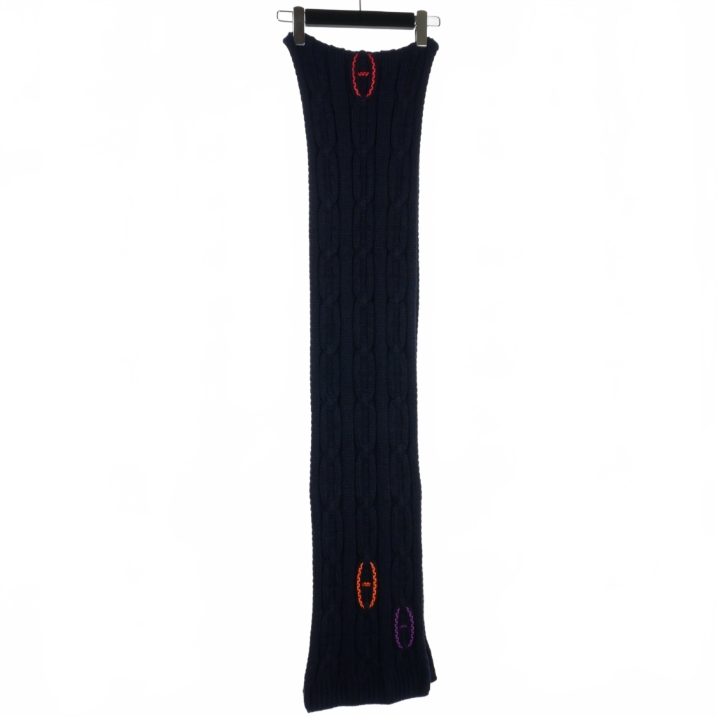 エルメス HERMES トリマイヨン シェーヌダンクル レザー ディティール マフラー カシミヤ 紺 ネイビー メンズ