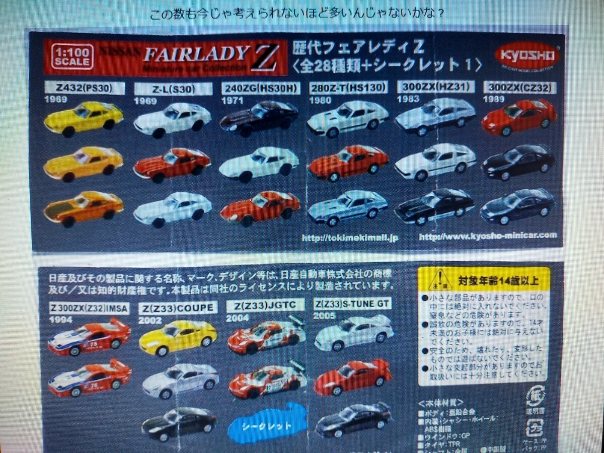 1/100です。京商 缶コーヒーおまけミニカー 歴代フェアレディZ-コレクションです。写真撮影の為、開封した新品未使用です。