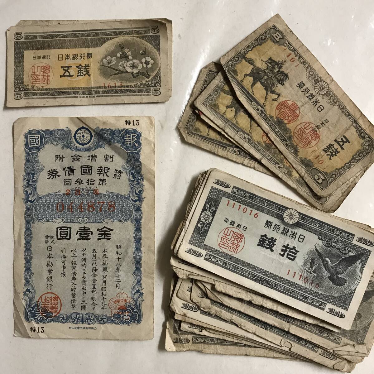 48枚 古銭 拾銭 五銭 紙幣 日本銀行券 鳩 楠木正成 奨金附 特別報国債券 戦時中 @12W