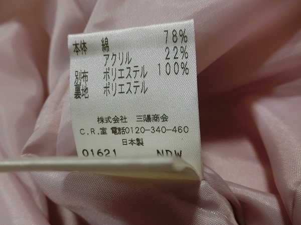 | 素材 | 表綿78%アクリル22% 裏ポリエステル |
