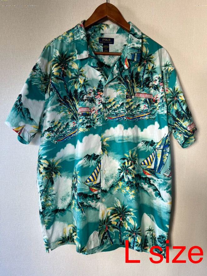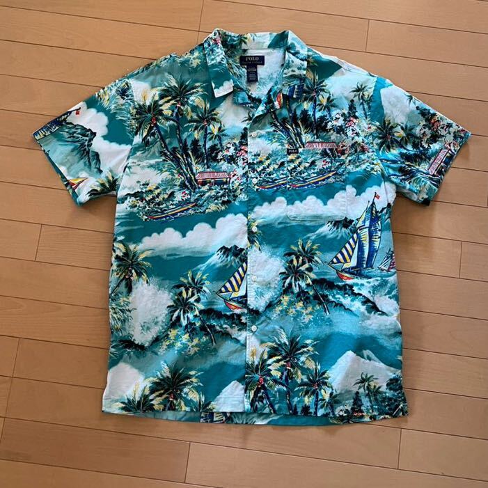 Lサイズ ポロ ラルフローレン ハワイアンシャツ アロハシャツ ヨット柄 POLO RALPH LAUREN VINTAGE CAMP